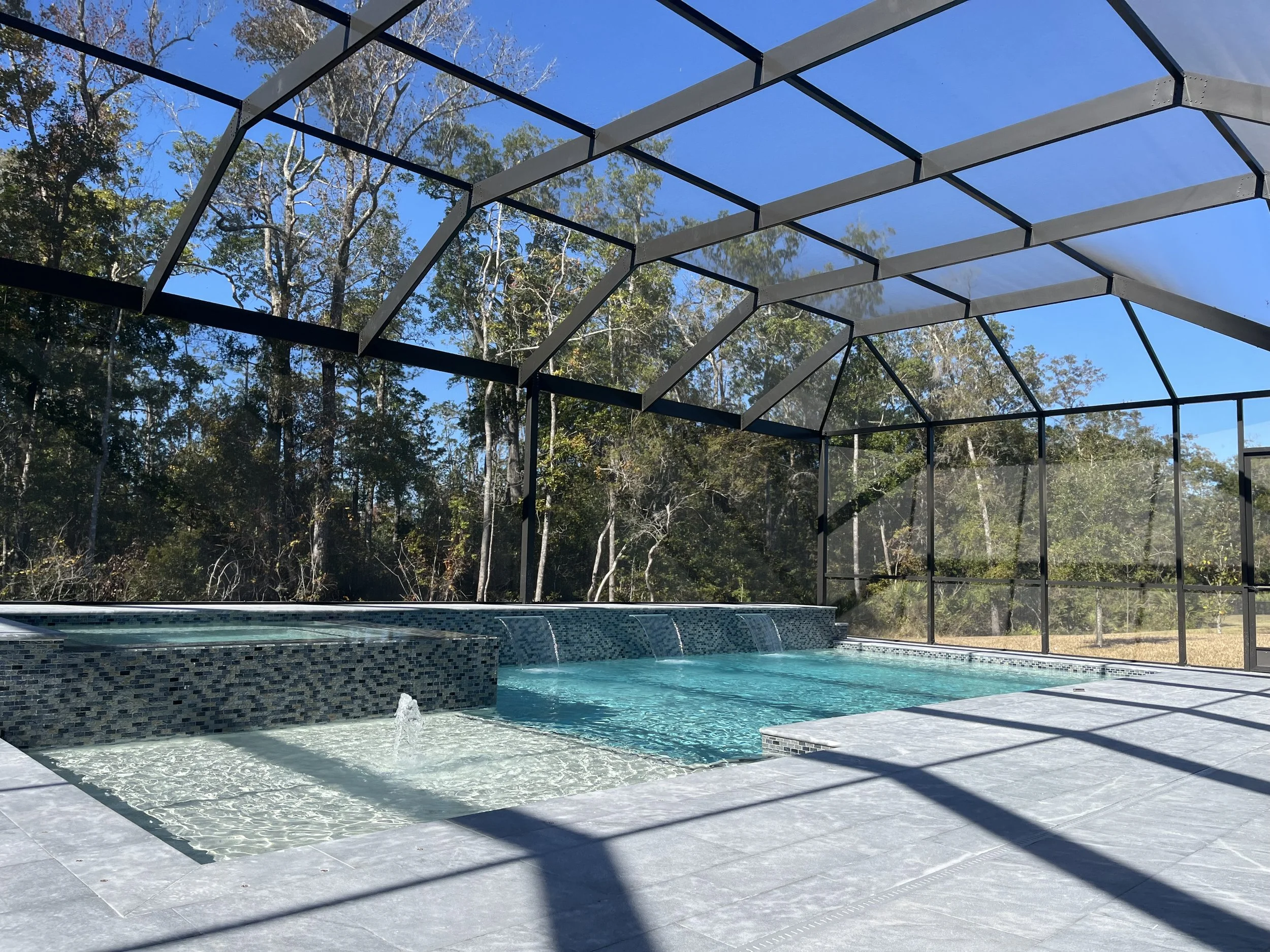 Enhance your outdoor living experience significantly with a beautifully designed screen enclosure. Enjoy your patio or poolside area fully, free from annoying insects, debris, or harmful sun rays that could diminish your enjoyment. Our enclosures seamlessly combine both functionality and style, ensuring comfortable relaxation and entertaining for you and your guests.