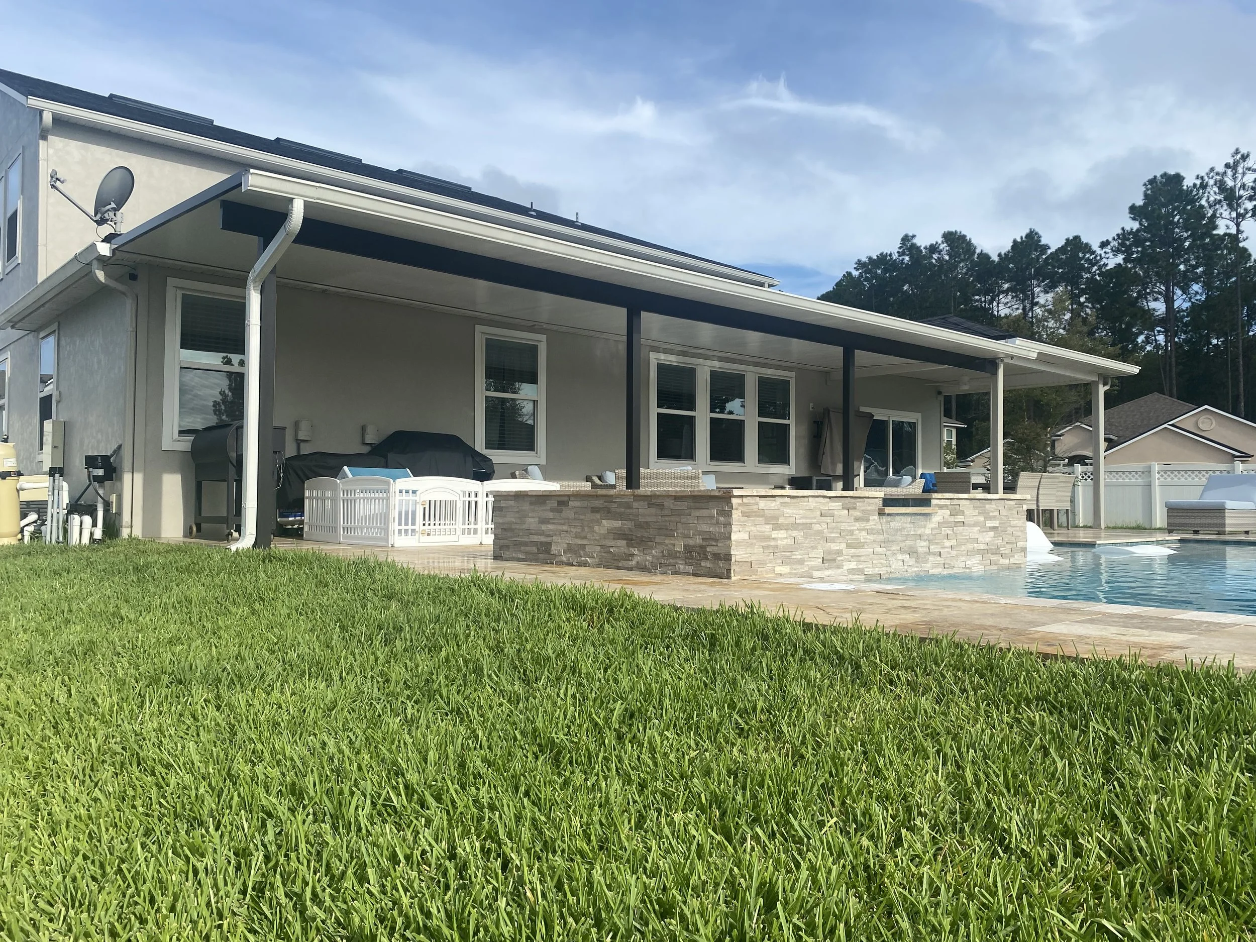 Whether using high grade insulated composite panels or a basic pan roof system, covering your patio will ensure longevity of your patio and furniture, while keeping you cool from the Florida heat and weather. Perfect for any space you want to dry and cool.