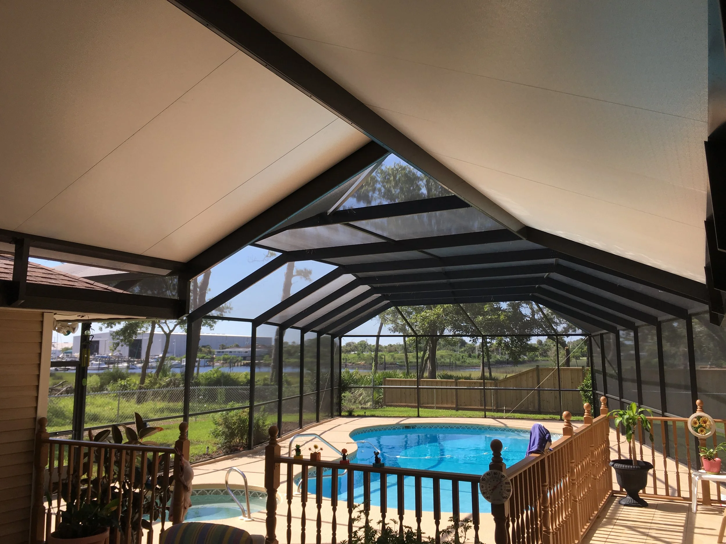 Living in the Sunshine State, we experience incredibly variable weather, an abundance of reptiles, and insects galore. A screen room gives you a comfortable getaway from all the aspects of our beautiful state while allowing you to take in the fresh air and views we love. Offering protection from harsh weather and strong UV, you cannot beat a screen room completely customized to fit you.